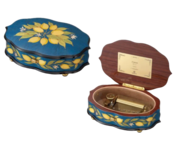 Traumerei A Maiden's Prayer 50Note Music Box- Italian Inlaid Oval Blue